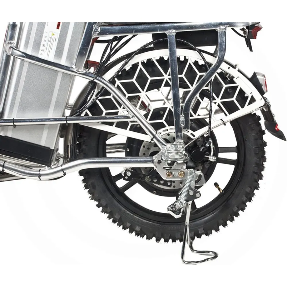 Техника представлена надежной конструкцией, изготовлена из прочного и легкого алюминия. Производитель позаботился об улучшении скоростных характеристик, обеспечив электровелосипед задним приводом. Быстросъемный литий-ионный аккумулятор обеспечивает запас хода на одном заряде до 100 км. Для простоты управления и возможности ориентироваться на местности техника оснащена современным бортовым компьютером. Абсолютная безопасность поездок обеспечивается наличием передних барабанных и задних гидравлических тормозов. Возможность перейти на педальный режим предотвращает возникновение аварийных и непредвиденных ситуаций.