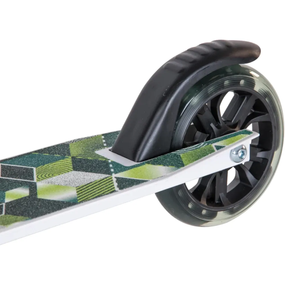Рулевая часть регулируется в 3-х положениях, по высоте 640-750-830 мм. Наличие специального зажима исключает люфт и посторонние шумы. Колесная часть изготовлена из мало стираемого полиуретана, имеет размеры 125 мм, достаточные для езды по городской местности и парковой зоне. Встроенная светодиодная подвеска сделает время провождение радостным, а ездока заметным на фоне других участников движения. Самокат оснащен широкой нескользящей декой и аналогичными грипсами, обеспечивающими отличное качество езды и безопасность маленького райдера. Заказать технику сейчас по приемлемой стоимости позволит телефонный звонок менеджеру интернет-магазина.